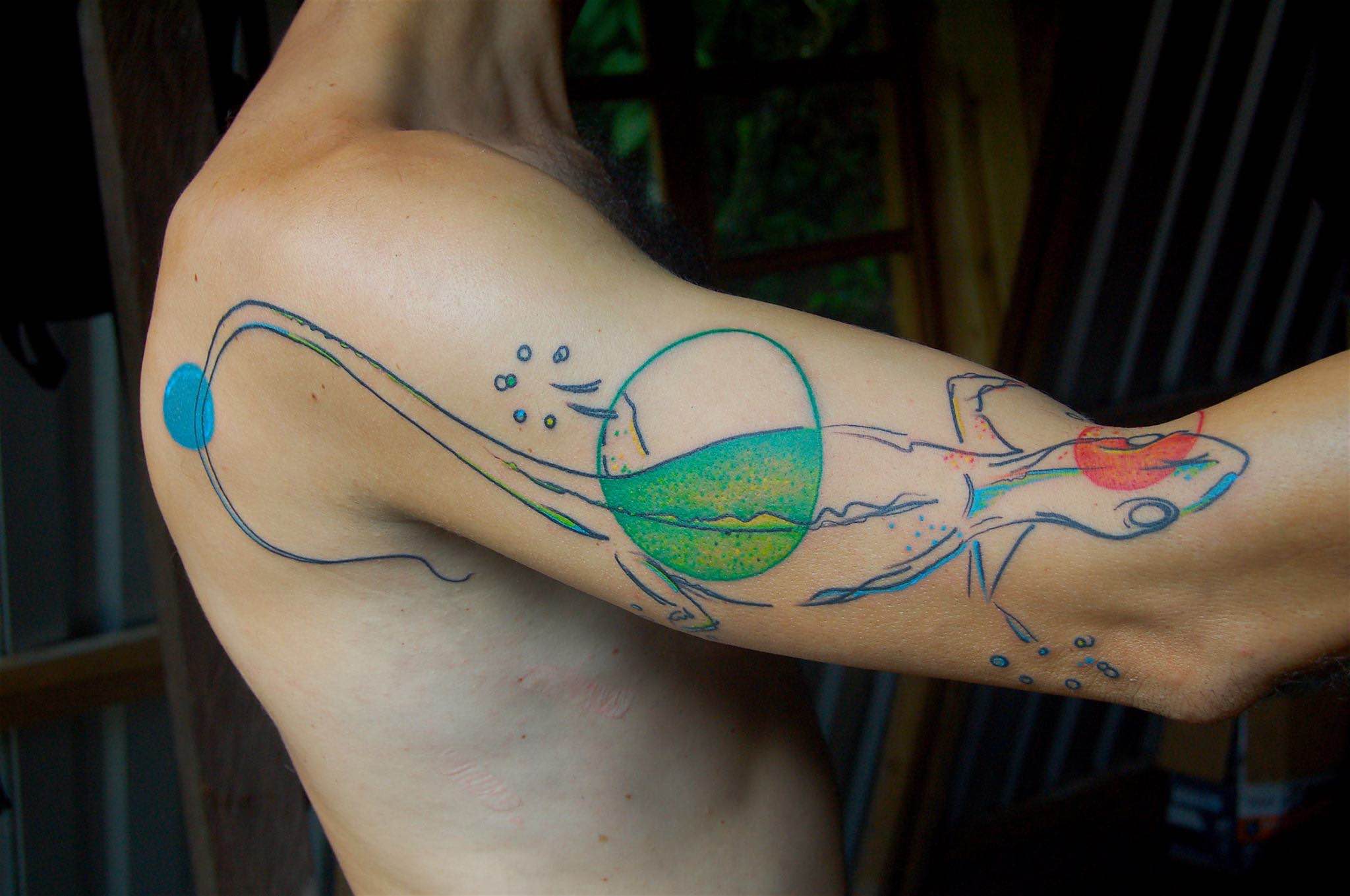 “Mi trabajo es la simplicidad en el diseño. Yo a los clientes los voy orientando, vas como por experiencia limpiando todo lo que sobra. Cuando sobreracionalizas un tatuaje, y te quedés, hacé un diseño que tenga un gato una luna y un árbol. Yo voy cortando. A veces recurrimos a símbolos muy densos, es complicado porque la gente cambia. Yo lo que trato es que con los diseños que yo hago la gente pueda convivir para toda la vida”, indicó.